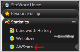 2. Under "SiteWorx Menu", click the "Statistics" menu item if it is not already open.