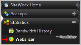 2. Under "SiteWorx Menu", click the "Statistics" menu item if it is not already open.