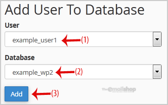 3. Scroll down to the end of the page and under "Add User to Database", select a user from the dropdown list, and then choose a Database from the list.