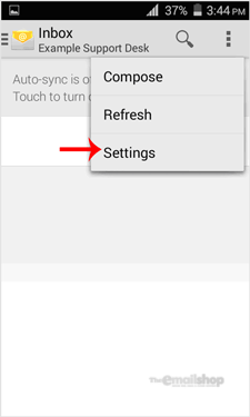 2. In the Mail option, tap on the Menu and then on the Settings button.