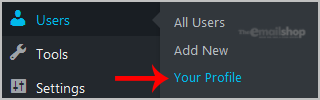 2. Under the dashboard menu, hover your mouse over "Users" and then click on "Your Profile".