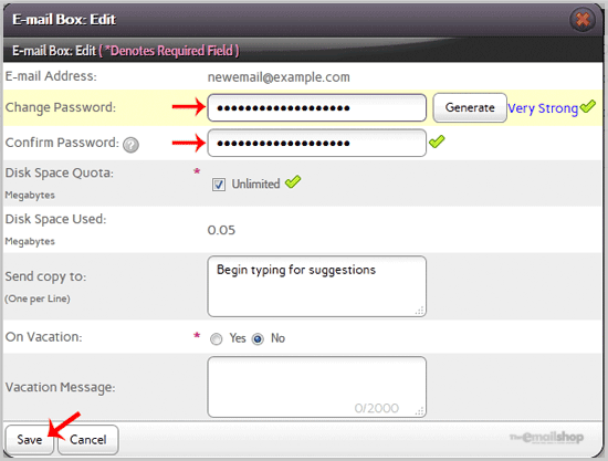 5. Enter your new password in the password field or use a password generator.