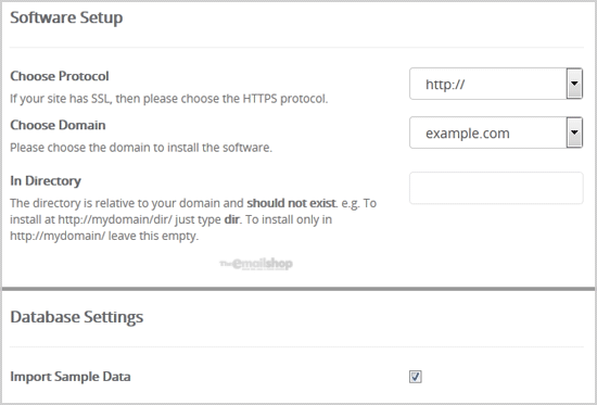 • In Directory: If you want to install this in a directory, for example example.com/directory, enter the directory name. Otherwise, leave this blank to install in your main domain example.com