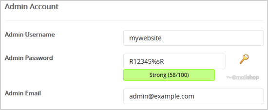 8. Under the "Admin Account" field enter the following information: