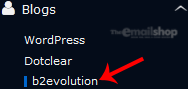 4.  On the left side of your screen you should locate the "Blogs" category. Click on it and then click on the "b2evolution" link that will appear.