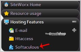 2. Under "SiteWorx Menu", click the "Hosting Features" menu item if it is not already open.