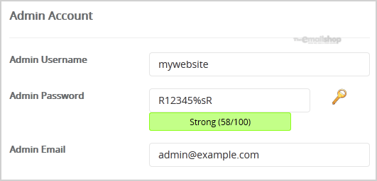 - Admin Username: Your new Composr username (for security reason do not use the "Administrator" or the "Admin" username.)