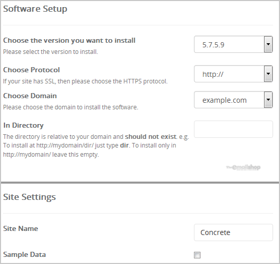 • Site Name: Enter the name of your website, such as "Concrete5".