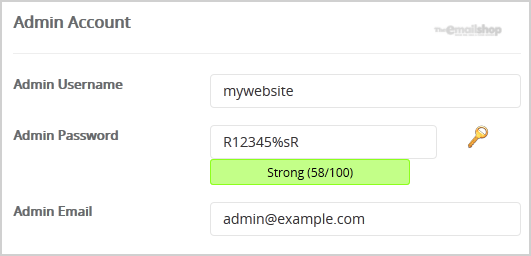 7. Under the "Admin Account" field enter the following information: