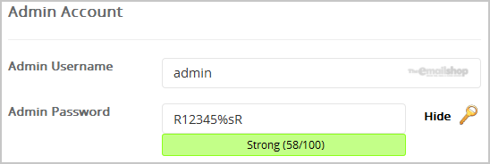 7. Under the "Admin Account" field enter the following information: