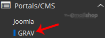 4. On the left side of your screen you should locate the "Portal/CMS" category. Click on it and then click on the "GRAV" link that will appear.