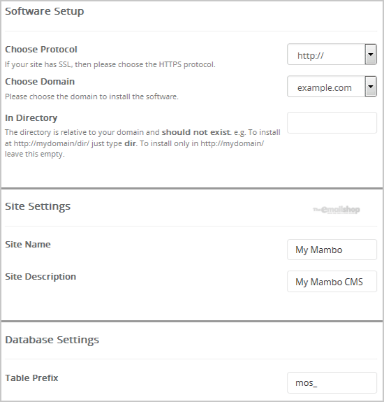 - Site Name: Enter the name of your website, such as "Mambo".