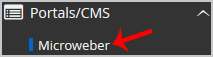 4. On the left side of your screen you should locate the "Portal/CMS" category. Click on it and then click on the "Microweber" link that will appear.