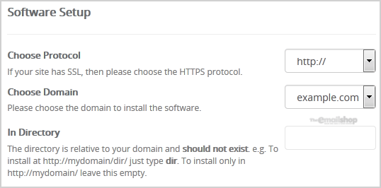 In Directory: If you want to install this in a directory, for example example.com/forum, enter the directory name. Otherwise, leave this blank to install in your main domain example.com