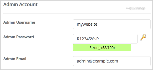 7. Under the "Admin Account" field enter the following information: