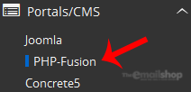 4. On the left side of your screen you should locate the "Portal/CMS" category. Click on it and then click on the "PHP-Fusion" link that will appear.