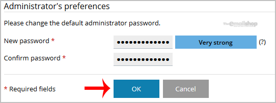 Step 6: Scroll down to the end of page, generate a new password or enter it manually, then press "OK". Make sure that you stored this password in a safe place. In the next step, enter your administrative information such as an email address, a contact name and then press "OK".