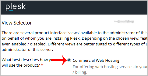Step 5: From the View Selector, choose your preferred option. We are going to use our Plesk control panel for selling hosting plans so we should select a "Commercial Web Hosting" option and then scroll down and press "OK".