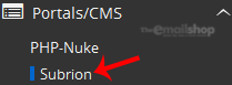 4. On the left side of your screen you should locate the "Portal/CMS" category. Click on it and then click on the "Subrion" link that will appear.