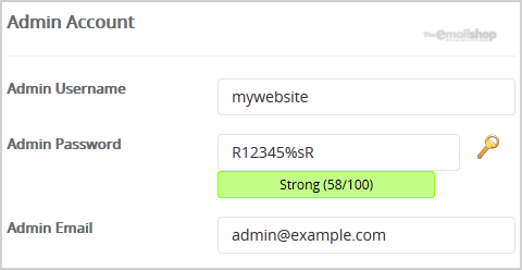 8. Under the "Admin Account" field enter the following information: