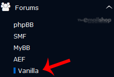 4. On the left side of your screen you should locate the "Forums" category. Click on it and then click on the "Vanilla" link that will appear.