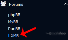 4.  On the left side of your screen you should locate the "Forums" category. Click on it and then click on the "XMB" link that will appear.