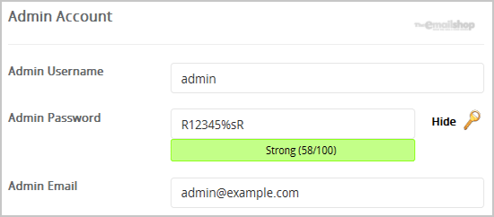 - Admin Username: Your new Zikula username (for security reason do not use the "Administrator" or the "Admin" username.)