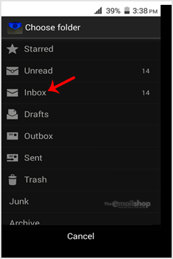 4. Now it will show an option to choose a folder. Tap on "Inbox".