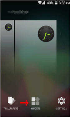 1. Open your Android mobile. Tap on the blank area of your home screen for a few seconds and you will see a number of options displayed, such as Wallpaper, Widget, etc. You just need to tap on Widgets.