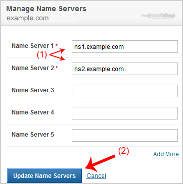 4. Enter our nameservers found in our Welcome Email and then click on the "Update Name Servers" Button.
