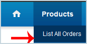 2. After a successful login, click on "List All Order" from the "Products" drop-down menu.
