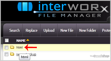 3. Navigate to the directory where you want to upload your files to. For example, should you wish to upload your file to the public html folder, you need to go to /html first. On the left side you can see a list of directories. Double Click on the "html" folder.